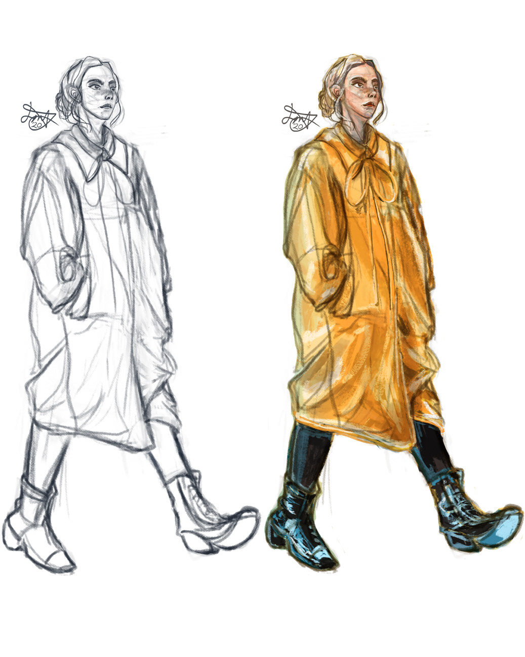 looking at expressions and poses, different illustration styles and costumes/outfits